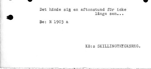 //// Det hände sig en aftonstund för icke //// ^^ länge sen... //// Be: N 1903 a //// KB:s SKILLINGTRYCKSREG. //// 1 //// t ////
