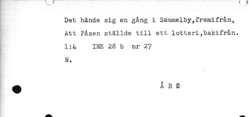 //// --*—____—_—- ... - * //// Det hände sig en gång i Sammelby, framifrån, //// Att Påsen ställde till ett lotteri,bakifrån, //// - //// * //// 1:4 INE 28 b nr 27 //// N. //// t //// ^ ÅBO) ////