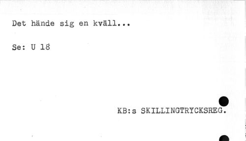 //// Det hände sig en kväll... //// Se: U lg //// KB:s SKILLINGTRYCKSREG. ////