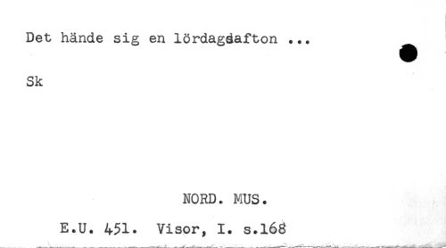//// Det hände sig en lördagåafton ... //// Sk //// NORD. MUS. //// E.U. 451. Visor, I. s.l63 ////