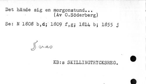 //// Det hände sig en morgonstund... - //// (Av O.Söderberg) //// Se: N 1303 b,d; 1309 f,g; 1314 b; 1355 j //// * //// Hk //// KB:s SKILLINGTRYCKSREG. ^ ////