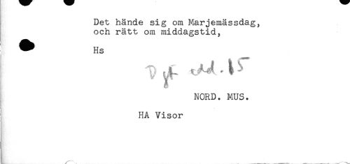 //// Det hände sig om Marjemässdag, //// och rätt om middagstid, //// NORD. MUS. //// HA Visor ////