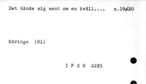 //// Det hände sig sent om en kväll.... s.19/20 //// Rävinge (Hl) //// I F G H 2229 ^ ////