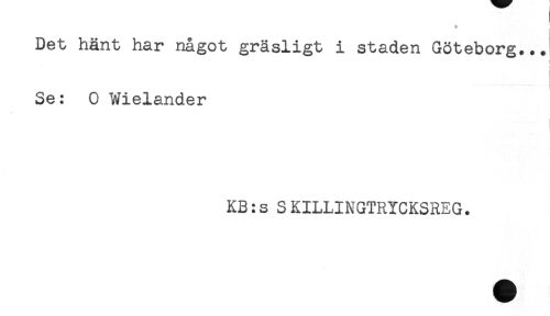 //// Det hänt har något gräsligt i staden Göteborg... //// < //// Se: 0 Wielander //// KB:s S KILLINGTRYCKSREG. ////