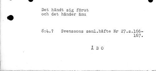 //// Det händt sig förut //// ^ och det händer änu //// ! //// i //// 6:4.? Svenssons saml.häfte Nr 27.s.166- //// 167. //// ÅBO //// * //// ----,---—...—---——---—---- f- ////