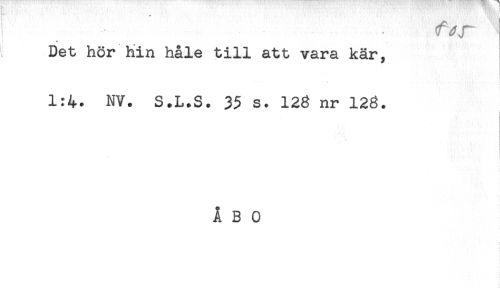 //// Det hör hin håle till att vara kär, //// 1:4. NV. S.L.S. 35 s. 128 nr 128. //// ÅBO ////