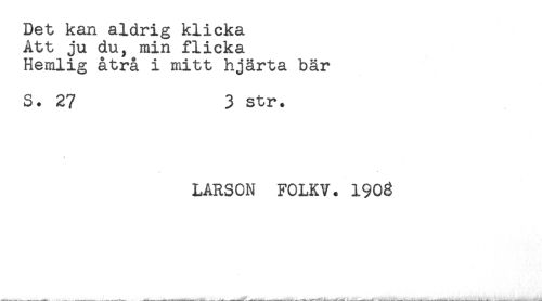 //// Det kan aldrig klicka //// Att ju du, min flicka //// Hemlig åtrå i mitt hjärta bär //// S. 27 3 str. //// LARSON FOLKV. 1908 ////