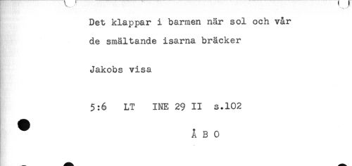 //// Det klappar i barmen när sol och vår //// de smältande isarna bräcker //// Jakobs visa //// 5:6 LT INE 29 II s.102 //// ^ ÅBO ////