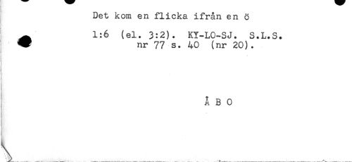 //// Det kom en flicka ifrån en ö //// ^ 1:6 (el. 3:2). KY-LO-SJ. S.L.S. //// I ^ nr 77 s. 40 (nr 20). //// ! //// ) //// ÅBO ////