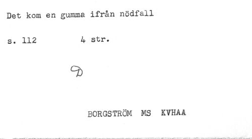 //// Det kom en gumma ifrån nödfall //// s. 112 4 str. //// BORGSTRÖM MS KVHAA ////