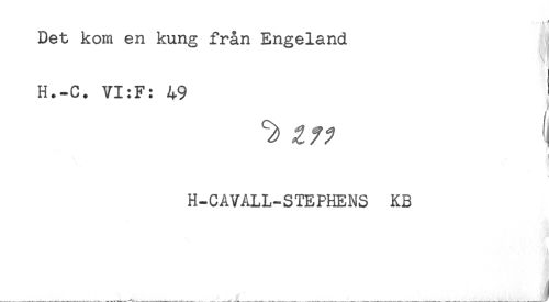 //// Det kom en kung från Engeland å //// H.-C. VI:F: 49 //// ^ ^ f 7 ^ //// H-CAVALL-STEPHENS KB ////