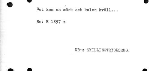 //// Det kom en mörk och kulen kväll... //// B ; //// Se: E 1357 z //// K"' //// i //// )- //// KB:s SKILLINGTRYGKSREG. //// A , ////