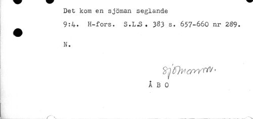 //// Det kom en sjöman seglande //// - //// 9:4. H-fors. S.L.S. 3%3 s. 657-660 nr 289. //// N. //// ÅBO //// ! //// < //// T //// /... ... . . , ////