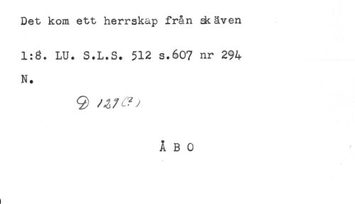 //// Det kom ett herrskap från ät även //// 1:8. LU. S.L.S. 512 s.607 nr 294 //// N. //// 9 W 'y //// ÅBO ////