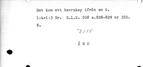 //// * //// Det kom ett herrskap ifrån en ö. //// 1:4+1:3 Br. S.L.S. 508 s.828-829 nr 350. //// N. //// / / ^ //// ÅBO ////