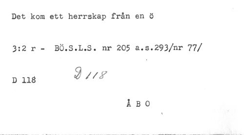 //// Det kom ett herrskap från en ö //// 3:2 r - BÖ.S.L.S. nr 205 a.s.293/nr 77 //// /D118 ^^ //// ÅBO ////