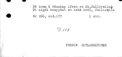 //// Dä koHim ä hässkap ifrån en öi,falliralla§ //// Di aigdä knappäst en kakä bröi, fallirqlla //// ] # Nr 206, sid.177 1 str. //// . //// * //// : //// FREDIN GOTLANDSTONER //// ! .....'. ____ __ ////