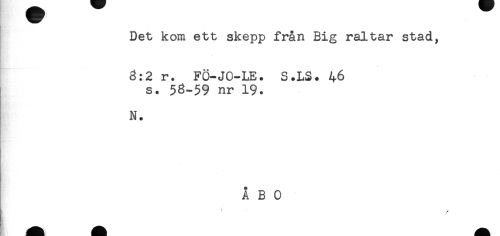 //// K/r //// Det kom ett skepp från Big raltar stad, //// 3:2 r. F0-JO-LE. S.LS. 46 //// s. 58-59 nr 19. //// N. //// ÅBO //// ' //// /