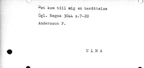 //// ^et kom till mig en berättelse //// Ögl. Regna 3044 s.7-20 //// Andersson P. //// ^ U L M A //// Hr ////