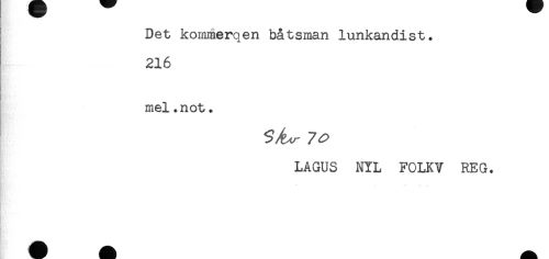 //// j //// Det kommerqen båtsman lunkandist. //// 216 //// } //// mel.not. //// LAGUS NYL FOLKV REG. ////