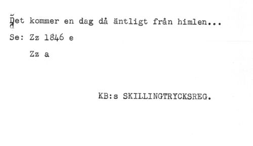 //// j^et kommer en dag då äntligt från himlen... //// Se: Zz 1346 e //// Zz a //// KB:s SKILLINGTRYCKSREG. ////