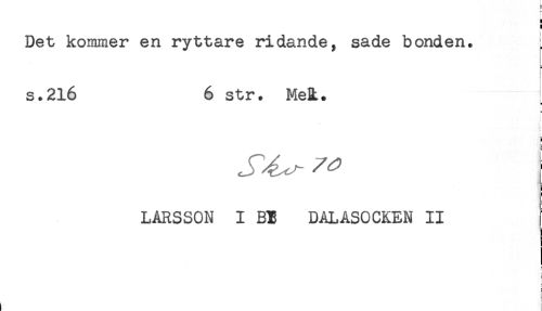 //// } //// ! //// Det kommer en ryttare ridande, sade bonden. //// s.216 6 str. Mel. //// a //// t- //// ! //// LARSSON I BI DALASOCKEN II //// 1 //// < //// É //// i //// E //// t ////