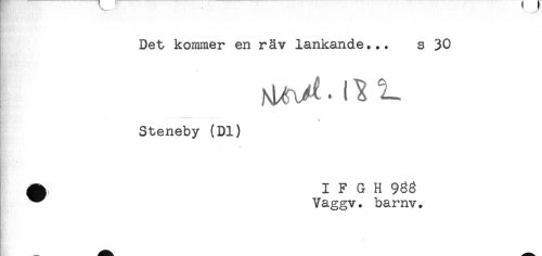 //// Det kommer en räv lankande... s 30 //// BK''"" //// ^ t //// % //// Steneby (Dl) //// * //// ^ I F G H 988 //// Vaggv. barnv. ////