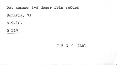 //// Det kommer två damer från snöden //// Borgvik, VI //// s.9-10. //// D 129^ } //// j //// t //// t //// I //// I F G H 2461 //// ! ////