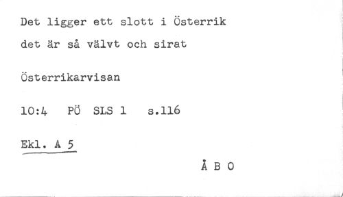 //// Det ligger ett slott i Österrik //// det är så välvt och sirat //// ! //// Osterrikarvisan //// 10:4 PO SLS 1 s.116 //// Ekl. A 5 //// ÅBO //// _____. J ////