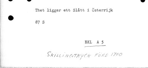 //// f- //// Thet ligger ett Slått i Ssterrijk //// ^ 8? S //// EKL A 5 ////