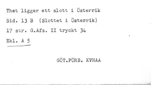 //// Thet ligger ett slott i Österrik //// Sid. 13 B (Slottet i Österrik) //// 17 str. G.Afz. II tryckt 34 //// Ekl. A 5 //// GÖT.FÖRB. KVHAA ////