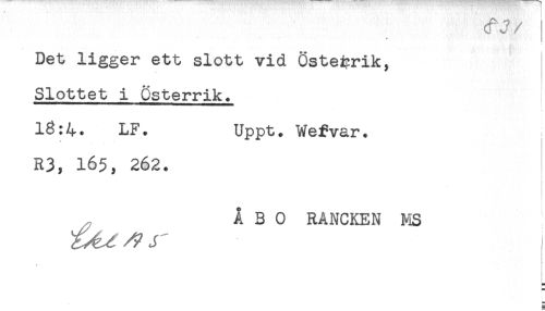 //// ^ ** * //// Det ligger ett slott vid Österrik, //// Slottet i Österrik. //// 16:4. LF. Uppt. Wefvar. //// R3, 165, 262. //// ÅBO RANCKEN MS ////
