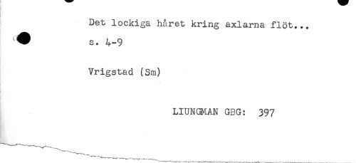 //// Det lockiga håret kring axlarna flöt... //// Vrigstad (Sm) //// ' //// LIUN^IAN GBG: 397 //// ----^ ////
