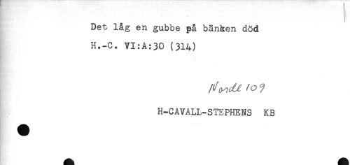 //// ' ' ' ' ' - - .. ... //// i . . . ... ... ! //// Det låg en gubbe på bänken död //// H.-C. YI:Å:30 (314) //// H-CAVALL-STEPHEMS KB ////