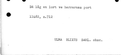 //// J //// I Dä låg en lort ve herrarnas port //// I ^ 11482, s.712 //// t //// ! ULMA BLIXTS SAML. obsc. //// 1 ////