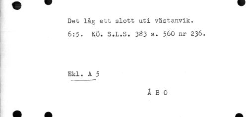 //// Det låg ett slott uti västanvik* //// 6:5. KÖ. S.L.S. 3^3 s. 560 nr 236. //// Ekl. A 5 ////