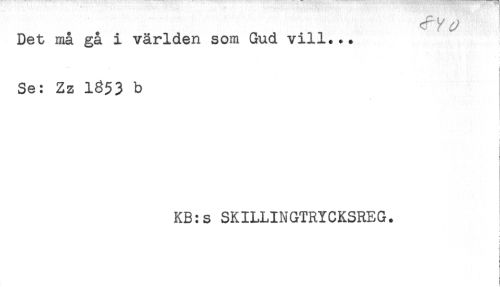 //// Det må gå i världen som Gud vill... //// Se: Zz 1853 b //// i //// KB:s SKILLINGTRYCKSREG. ////