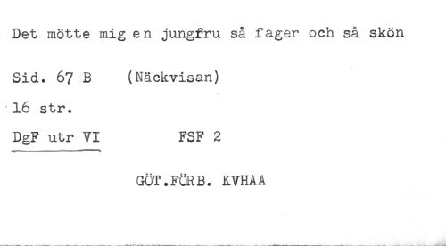 //// Det mötte mig en jungfru så fager och så skön //// Sid. 67 B (Näckvisan) //// * 16 str. //// DgF utr VI FSF 2 //// *...-..... '" t //// GÖT.FÖRB. KVHAA ////