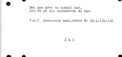 //// Det nya året nu kommit har, //// och än på din syndabörda du bar. //// 7:4.? Svenssons saml.häfte Nr 29.s.131-132 //// ÅBO ////