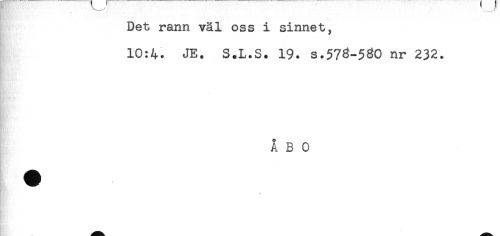 //// Det rann väl oss i sinnet, //// 10:4. JE. S.L.S. 19. s.573-580 ^ 232. //// ÅBO ////