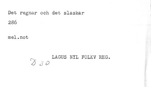 //// Det regnar och det slaskar //// 286 //// mel .not //// LAGUS NYL FOLKV REG. ////