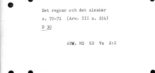 //// Det regnar och det slaskar //// s. 70-71 (Arw. III s. 254) //// D 30 //// ARV. MS KB Vs 2:2 ////