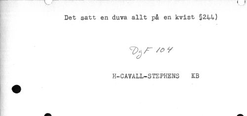 //// Det satt en duva allt på en kvist §244) //// Y> ^ //// H-CAVÅLL-STEPHENS KB ////