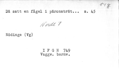 //// Dä satt en fågel i päronaträt... s. 45 //// i //// < //// i //// Nödinge (Vg) //// i //// - //// I F G H 749 //// Vaggv. barnv. //// * ////