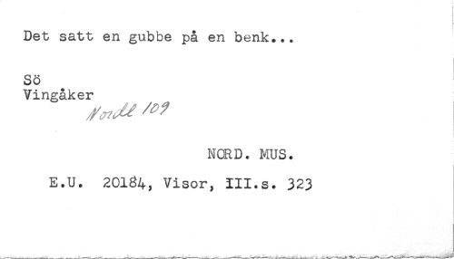 //// Det satt en gubbe på en benk*.. //// Sö //// Vingåker //// NORD. MUS. //// E.U. 20184, Visor, III.s. 323 ////