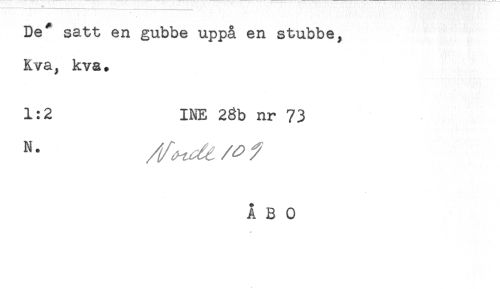 //// De* satt en gubbe uppå en stubbe, //// Kva, kva. //// 1:2 INE 28b nr 73 //// K' " ^ //// ÅBO ////