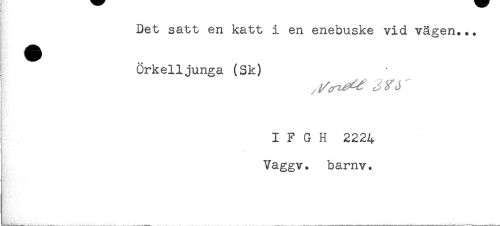 //// Det satt en katt i en enebuske vid vägen... //// Örkelljunga (Sk) //// I F G H 2224 //// ! //// Vaggv. barnv. ////