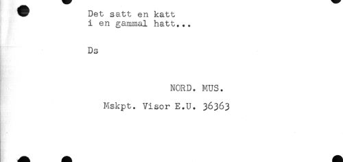 //// W Det satt en katt //// i en gammal hatt... //// Ds //// NORD. MUS. //// Mskpt. Visor E.U. 36363 //// Ki * //// HK* fH ////