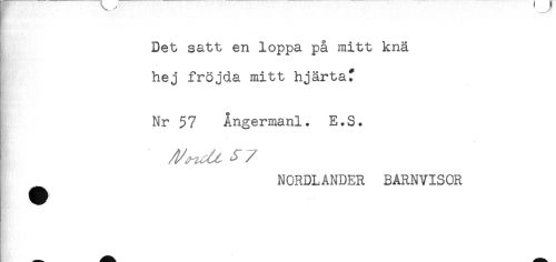 //// Det satt en loppa på mitt knä //// hej fröjda mitt hjärta? //// Nr 57 Ångermani. E.S. //// I ^ //// /^ NORDLANDER BARNVISOR ////