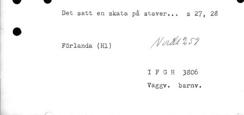 //// Det satt en skata på staver... s 27, 26 //// För landa (Hl) //// t, //// - //// I F G H 3^06 //// Vaggv. barnv. ////
